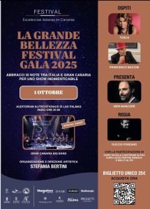 Gran Canaria Big Band junto a Cristina Ramos, Fasur Rodríguez y algunos de los intérpretes musicales más queridos de la cultura y la televisión italiana.Con ellos desde Gran Canaria el Coro Schola Cantorum de la Universidad de Las Palmas de Gran Canaria dirigido por el Maestro Stefano Degano y el Vocal Ensemble de Jóvenes del Liceo Sandro Pertini de Génova dirigido por el Maestro Luca Ferrari.https://auditorioalfredokraus.es/evento/la-grande-bellezza/2745